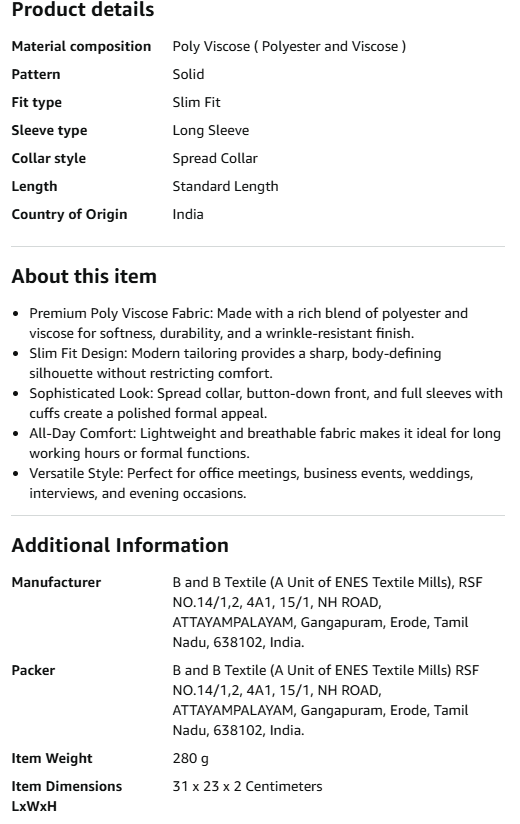 ARISER Mens Super Soft Slim Fit Full Sleeve Formal Shirt, Poly Viscose Blend, Solid Color Business & Office Wear Shirt