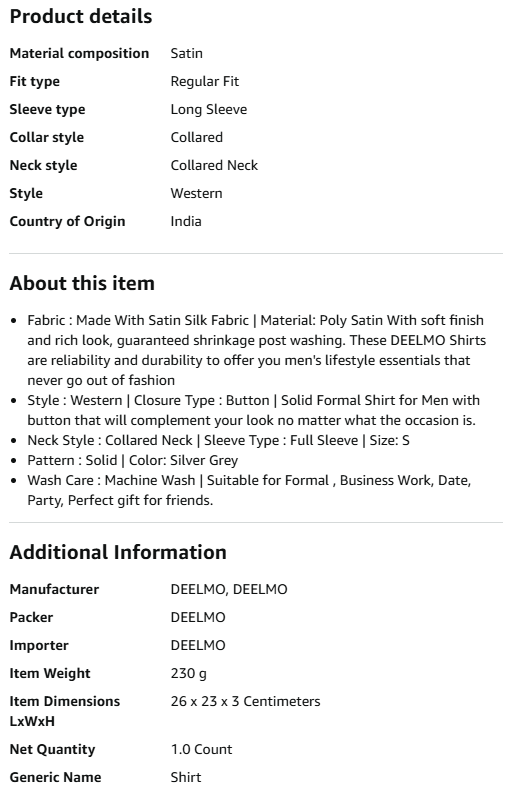 DEELMO Men's Stylish Solid Satin Casual Shirt for Men Full Sleeves| Poly Satin Silk Shirt