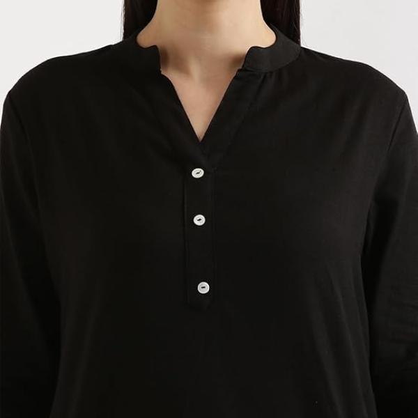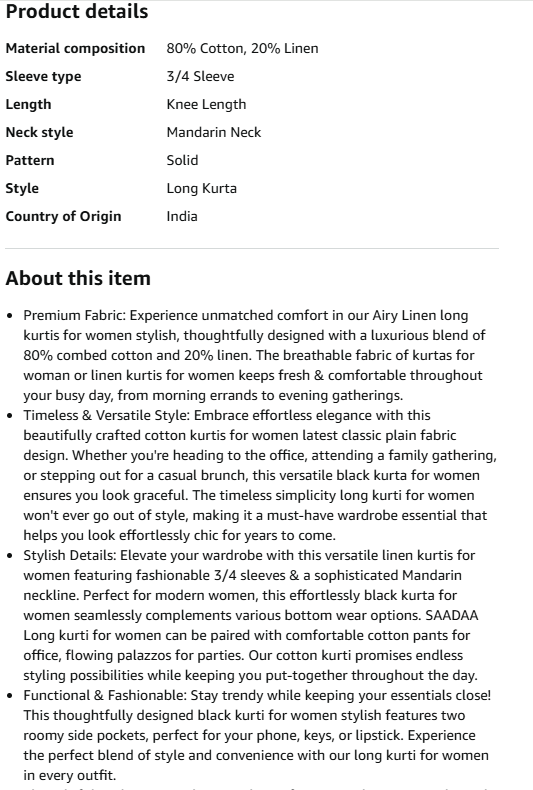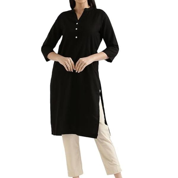 Women's Linen Straight Fit Straight Long Kurta Airy Plain Kurta, 3/4 Sleeve, Knee Length Kurtis with Pockets, Casual and Office Wear