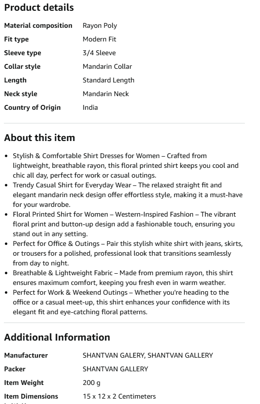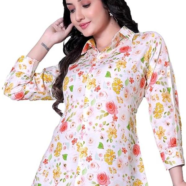 Women's Floral Printed Shirt for Women | Stylish White Rayon Tops | Casual Shirt for Woman | Fashionable Printed Women Tops | Mandarin Neck