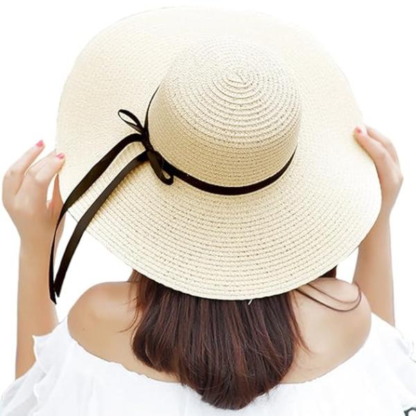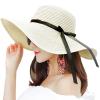 Itopfox Women's Big Brim Sun Hat - Floppy Foldable Straw Hat With Bowknot for Summer Beach