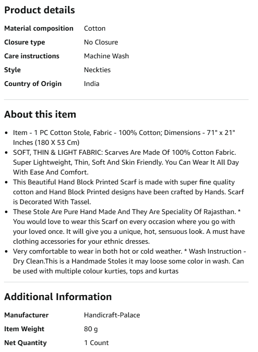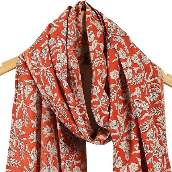 Ravaiyaa - Attitude is everything Hand Block Printed Cotton Long Stole Hijab Neck Wrap Scarf with Tassel 71" X 21" Inch