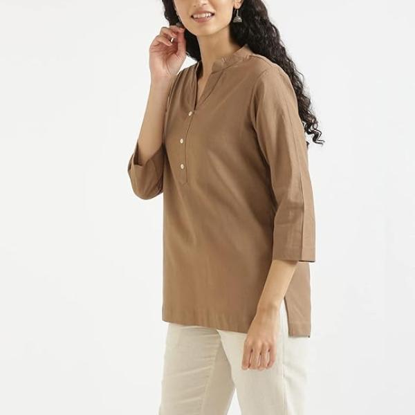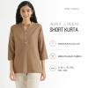 Women Short Kurti Airy Linen Regular Fit Kurta with 3/4th Sleeves, Mandarin Collar, Side Slit Perfect for Casual, Formal, and Ethnic Wear