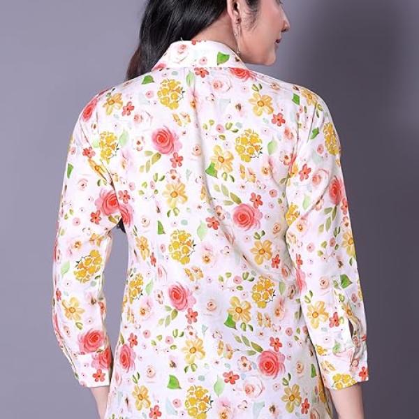 Women's Floral Printed Shirt for Women | Stylish White Rayon Tops | Casual Shirt for Woman | Fashionable Printed Women Tops | Mandarin Neck