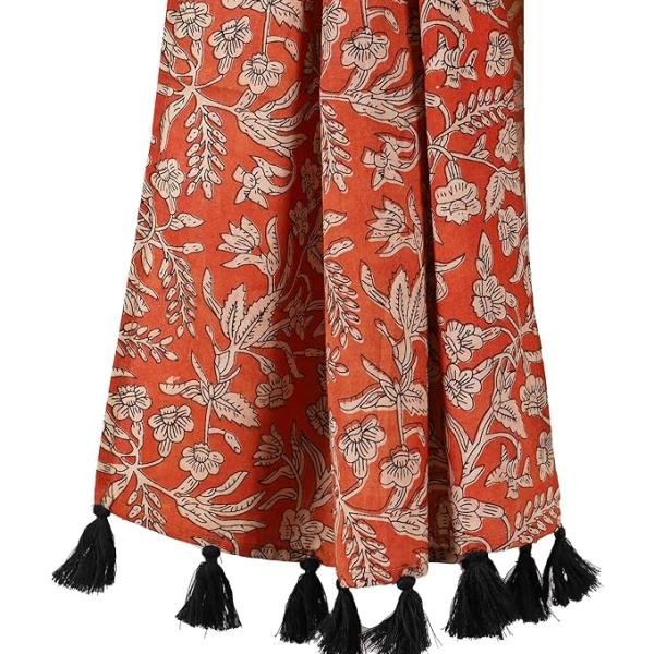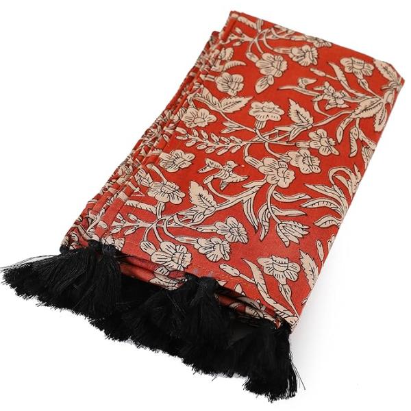 Ravaiyaa - Attitude is everything Hand Block Printed Cotton Long Stole Hijab Neck Wrap Scarf with Tassel 71" X 21" Inch